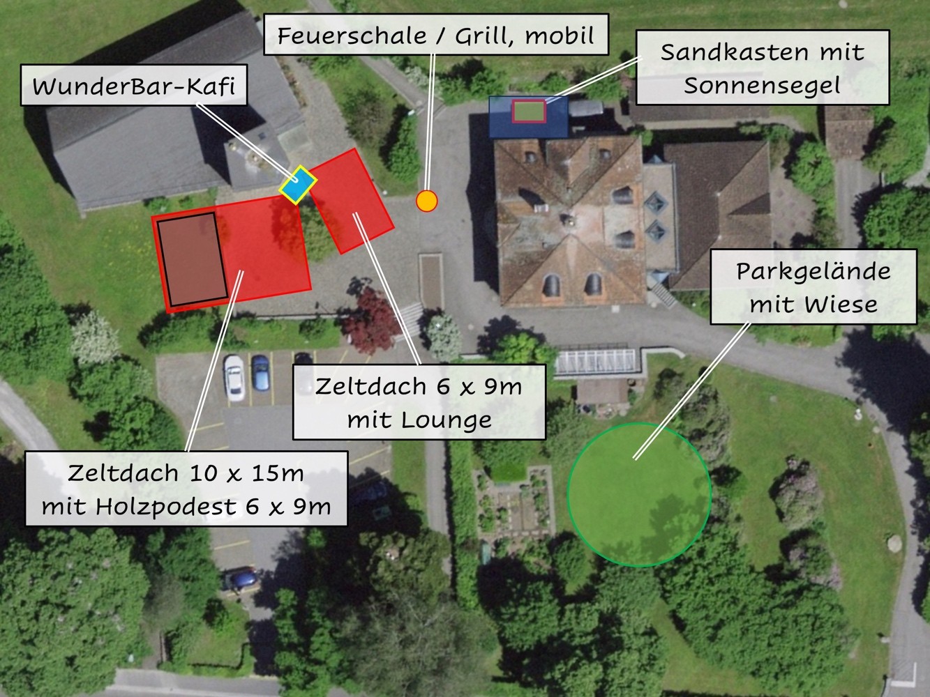 Die Kirchgemeinde organisiert ein Grundangebot mit grossem Zelt und Bühne, einem Park-Café, einer Lounge und Spielmöglichkeiten für Kinder. Sie führt eigene Veranstaltungen im Kirchenpark durch.